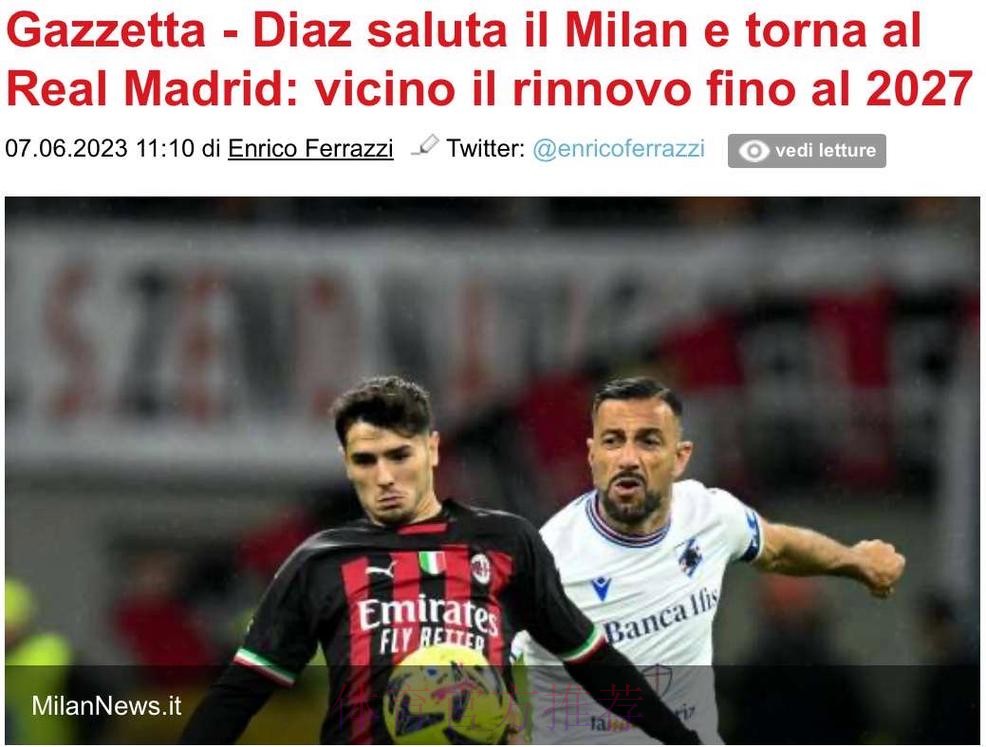 迪亚斯将与皇马续约至2027年 球员下季计划未定